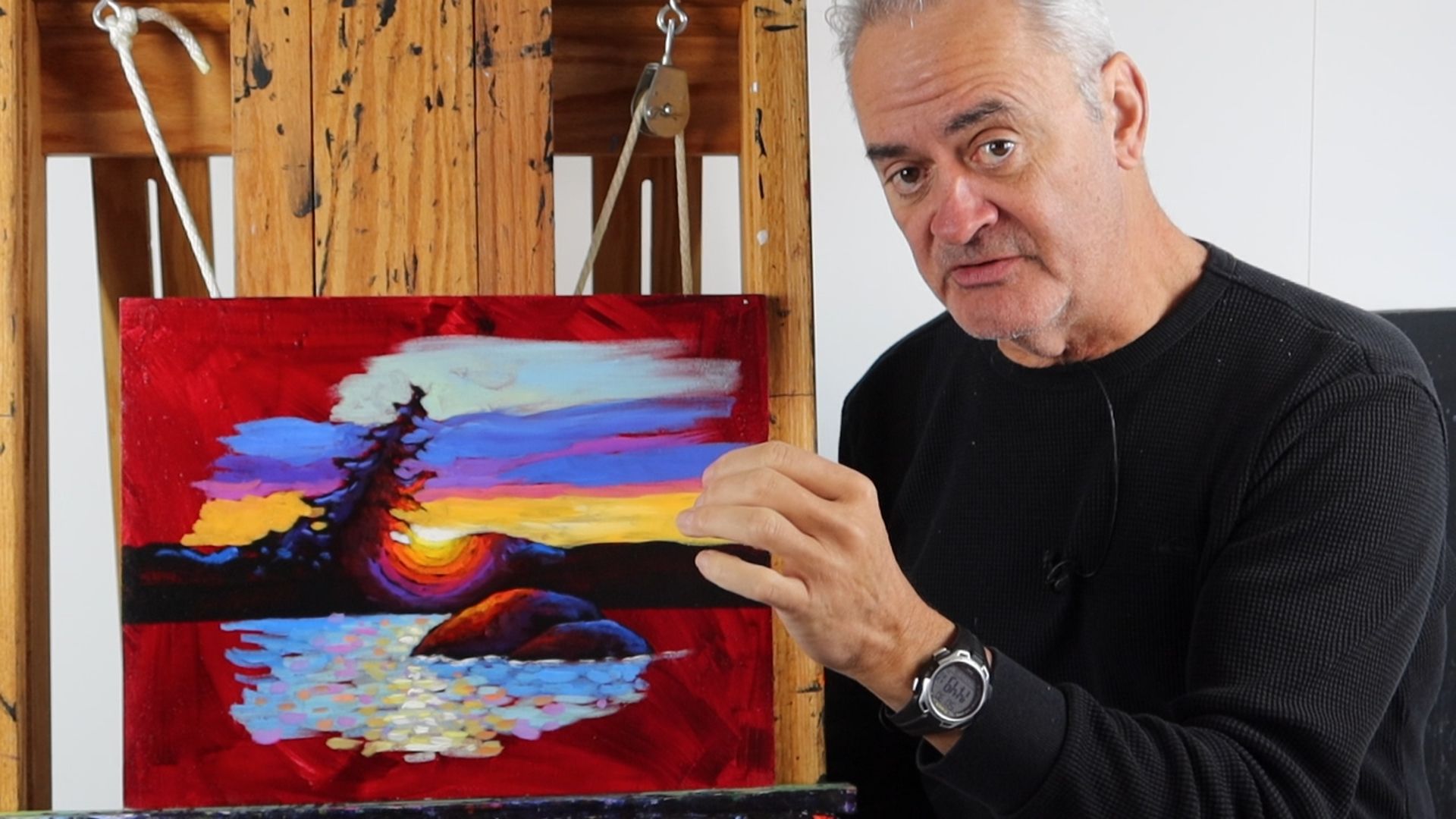 This is where the magic really starts. Tim walks you through how to use water-soluble oils (his go-to medium for over 20 years) and shares a powerful demo on using colour, contrast, and technique to create those breathtaking sunlit effects that make viewers stop and say, “Oh my God, I love it!”
