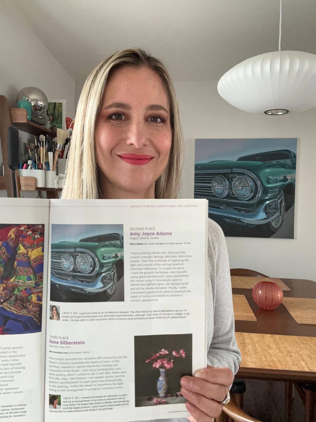 Winning 2nd prize in the Emerging Artists Still Life Category, and an honourable mention for their 40th Annual Art Competition, and she was featured in the Nov/Dec 2023 and Jan/Feb 2024 issues